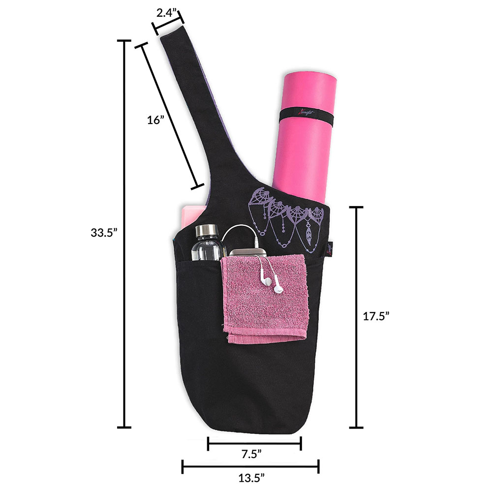 YOGA MATS WON’T FALL OUT: We’ve seen those short yoga bags and carriers too - you know the ones that seem large, but the mat still sticks out, making the tote bag feel uneven. Our Yoga Tote Bag is 33.5 inches long, and only 25% of the mat sticks out the top! So go ahead, measure your hot yoga mat or Pilates mat now, and if it’s 24 inches wide, then this is the yoga carrier you were looking for today.