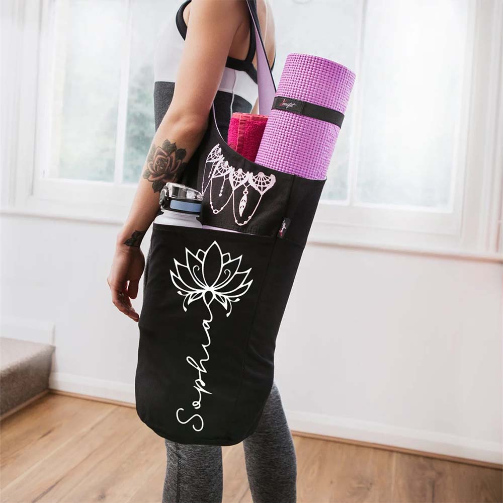 Personalized Lotus Yoga Mat Bag with Name, Gym Mat Holder Strap for Carrying, Holds More Yoga Accessories, Gifts for Woman Fitness/Sport Lover